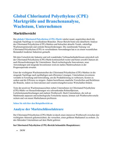 Global Chlorinated Polyethylene (CPE) Marktgröße und Branchenanalyse, Wachstum, Unternehmen