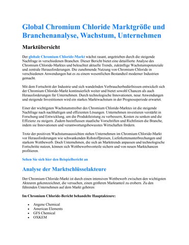 Global Chromium Chloride Marktgröße und Branchenanalyse
