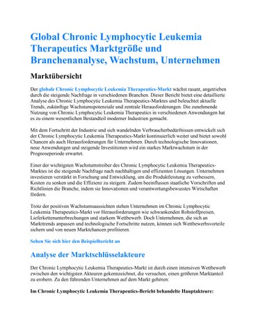 Global Chronic Lymphocytic Leukemia Therapeutics Marktgröße und Branchenanalyse