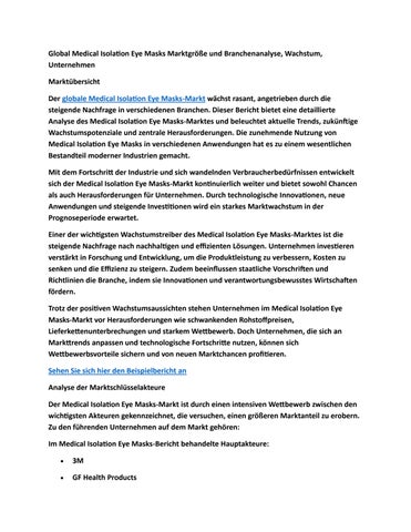 Global Medical Isolation Eye Masks Marktgröße und Branchenanalyse, Wachstum, Unternehmen