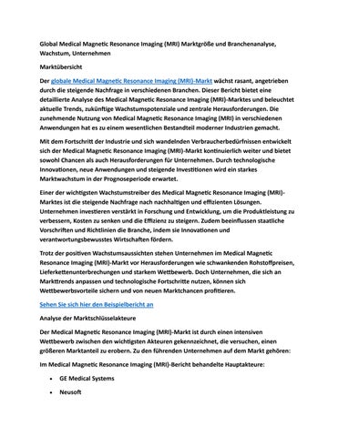 Global Medical Magnetic Resonance Imaging (MRI) Marktgröße und Branchenanalyse, Wachstum, Unternehme