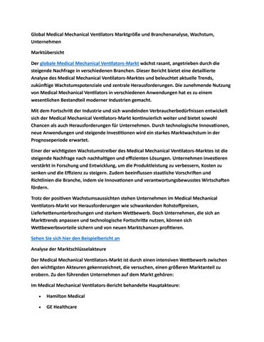 Global Medical Mechanical Ventilators Marktgröße und Branchenanalyse, Wachstum, Unternehmen