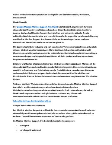 Global Medical Monitor Support Arm Marktgröße und Branchenanalyse, Wachstum, Unternehmen