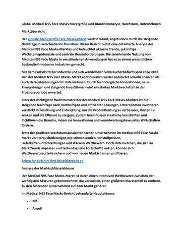 Global Medical N95 Face Masks Marktgröße und Branchenanalyse, Wachstum, Unternehmen