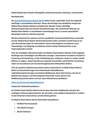Global Medical Nasal Washer Marktgröße und Branchenanalyse, Wachstum, Unternehmen