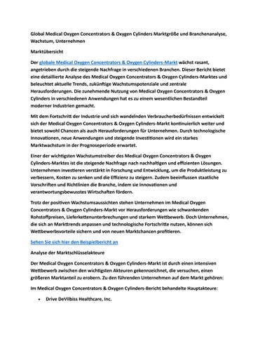 Global Medical Oxygen Concentrators & Oxygen Cylinders Marktgröße und Branchenanalyse, Wachstum, Unt