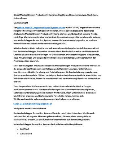 Global Medical Oxygen Production Systems Marktgröße und Branchenanalyse, Wachstum, Unternehmen