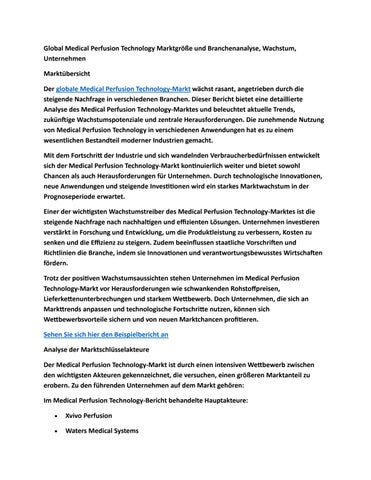Global Medical Perfusion Technology Marktgröße und Branchenanalyse, Wachstum, Unternehmen