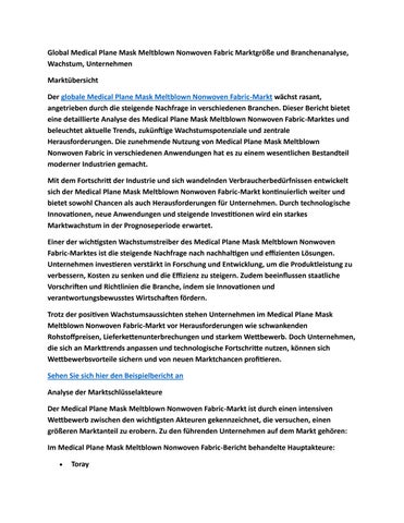 Global Medical Plane Mask Meltblown Nonwoven Fabric Marktgröße und Branchenanalyse, Wachstum, Untern