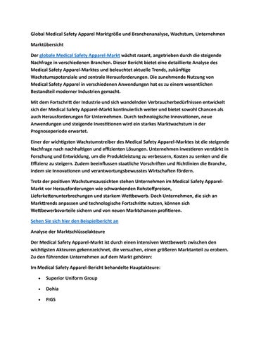 Global Medical Safety Apparel Marktgröße und Branchenanalyse, Wachstum, Unternehmen