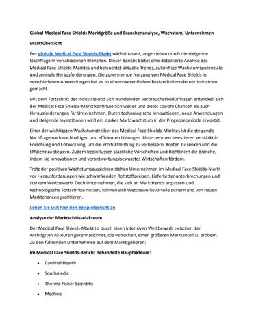 Global Medical Face Shields Marktgröße und Branchenanalyse, Wachstum, Unternehmen