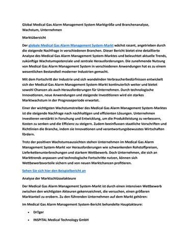 Global Medical Gas Alarm System Marktgröße und Branchenanalyse, Wachstum, Unternehmen