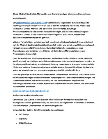 Global Medical Gas Outlets Marktgröße und Branchenanalyse, Wachstum, Unternehmen