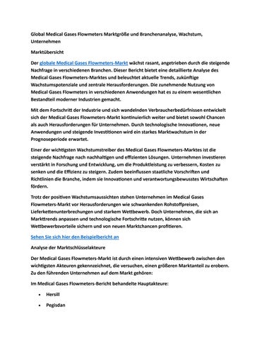 Global Medical Gases Flowmeters Marktgröße und Branchenanalyse, Wachstum, Unternehmen