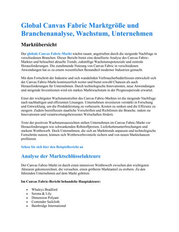 Global Canvas Fabric Marktgröße und Branchenanalyse