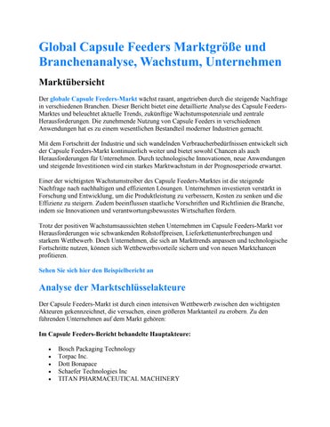 Global Capsule Feeders Marktgröße und Branchenanalyse