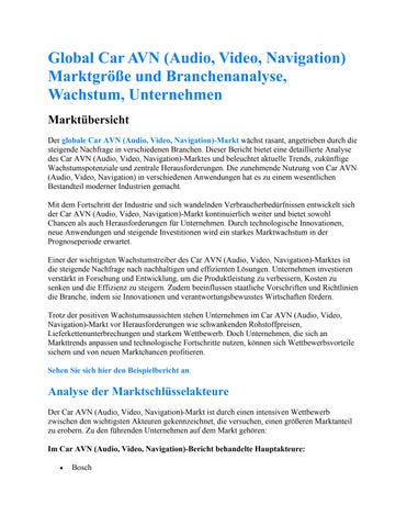 Global Car AVN (Audio, Video, Navigation) Marktgröße und Branchenanalyse, Wachstum, Unternehmen