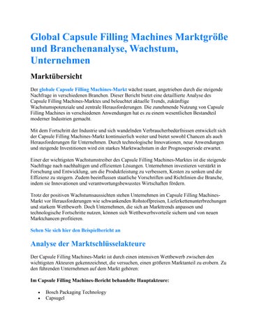 Global Capsule Filling Machines Marktgröße und Branchenanalyse