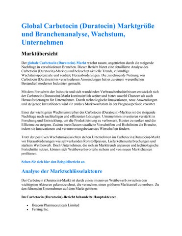 Global Carbetocin (Duratocin) Marktgröße und Branchenanalyse, Wachstum, Unternehmen