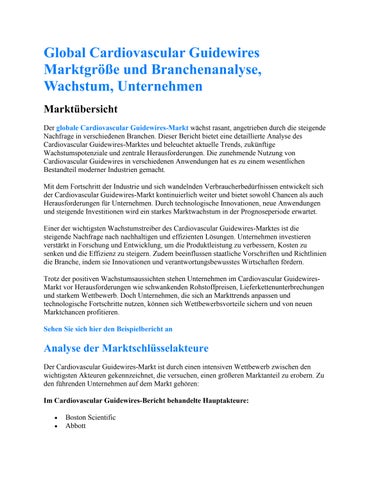 Global Cardiovascular Guidewires Marktgröße und Branchenanalyse