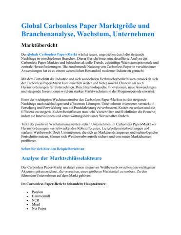 Global Carbonless Paper Marktgröße und Branchenanalyse