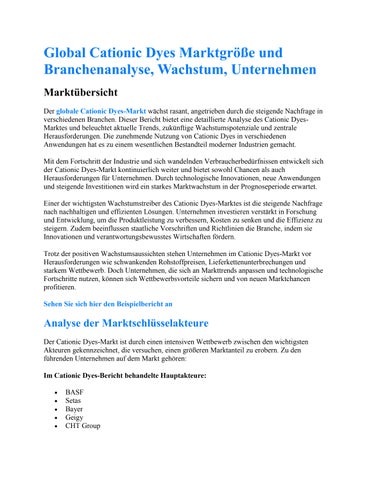 Global Cationic Dyes Marktgröße und Branchenanalyse