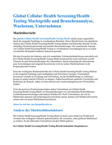 Global Cellular Health Screening/Health Testing Marktgröße und Branchenanalyse, Wachstum, Unternehme