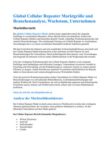 Global Cellular Repeater Marktgröße und Branchenanalyse