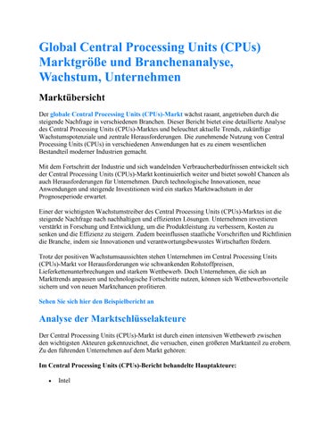 Global Central Processing Units (CPUs) Marktgröße und Branchenanalyse, Wachstum, Unternehmen