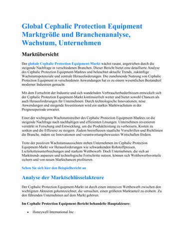Global Cephalic Protection Equipment Marktgröße und Branchenanalyse