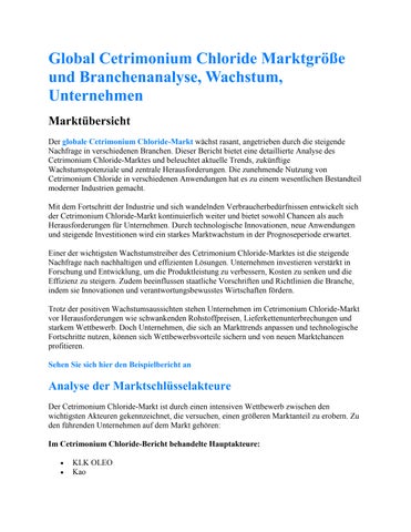 Global Cetrimonium Chloride Marktgröße und Branchenanalyse