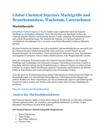 Global Chemical Injectors Marktgröße und Branchenanalyse