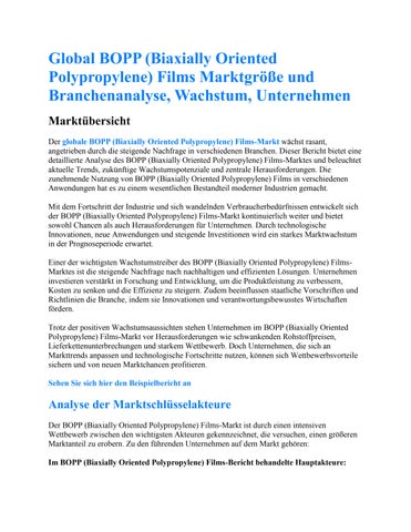 Global BOPP (Biaxially Oriented Polypropylene) Films Marktgröße und Branchenanalyse, Wachstum, Unter