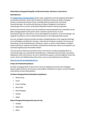 Global Bakery Packaging Marktgröße und Branchenanalyse, Wachstum, Unternehmen