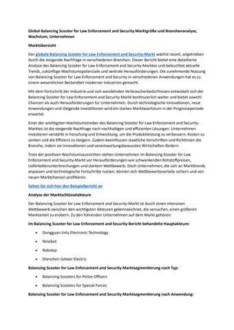 Global Balancing Scooter for Law Enforcement and Security Marktgröße und Branchenanalyse, Wachstum,