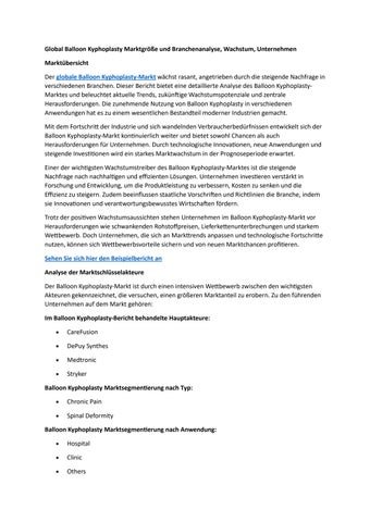 Global Balloon Kyphoplasty Marktgröße und Branchenanalyse, Wachstum, Unternehmen