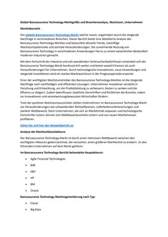 Global Bancassurance Technology Marktgröße und Branchenanalyse, Wachstum, Unternehmen