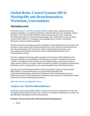 Global Brake Control Systems (BCS) Marktgröße und Branchenanalyse, Wachstum, Unternehmen