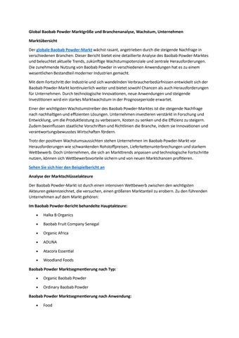 Global Baobab Powder Marktgröße und Branchenanalyse, Wachstum, Unternehmen