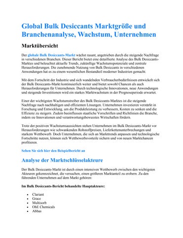 Global Bulk Desiccants Marktgröße und Branchenanalyse