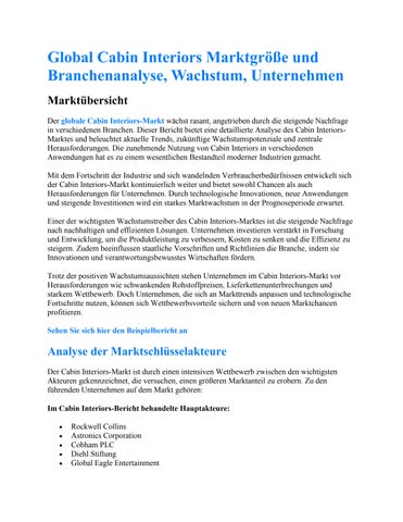 Global Cabin Interiors Marktgröße und Branchenanalyse