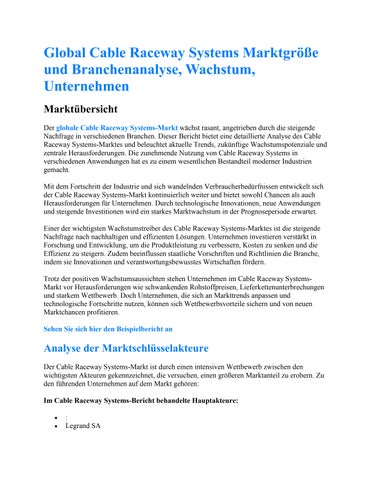 Global Cable Raceway Systems Marktgröße und Branchenanalyse
