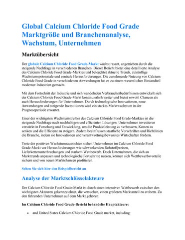 Global Calcium Chloride Food Grade Marktgröße und Branchenanalyse