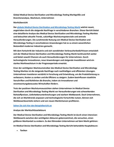 Global Medical Device Sterilization and Microbiology Testing Marktgröße und Branchenanalyse, Wachstu