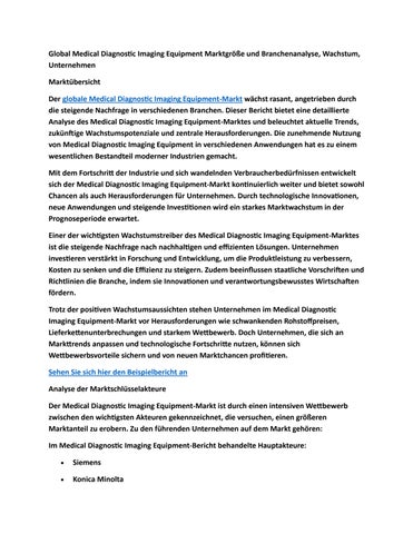 Global Medical Diagnostic Imaging Equipment Marktgröße und Branchenanalyse, Wachstum, Unternehmen