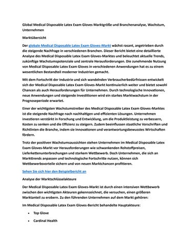 Global Medical Disposable Latex Exam Gloves Marktgröße und Branchenanalyse, Wachstum, Unternehmen
