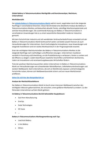 Global Battery in Telecommunications Marktgröße und Branchenanalyse, Wachstum, Unternehmen