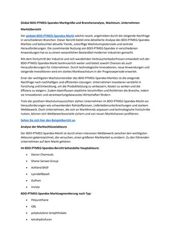 Global BDO-PTMEG-Spandex Marktgröße und Branchenanalyse, Wachstum, Unternehmen