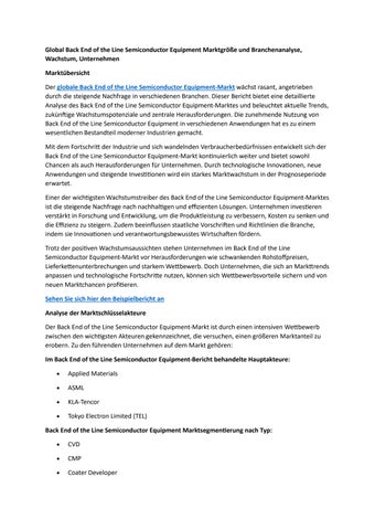 Global Back End of the Line Semiconductor Equipment Marktgröße und Branchenanalyse, Wachstum, Untern