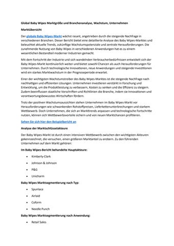 Global Baby Wipes Marktgröße und Branchenanalyse, Wachstum, Unternehmen